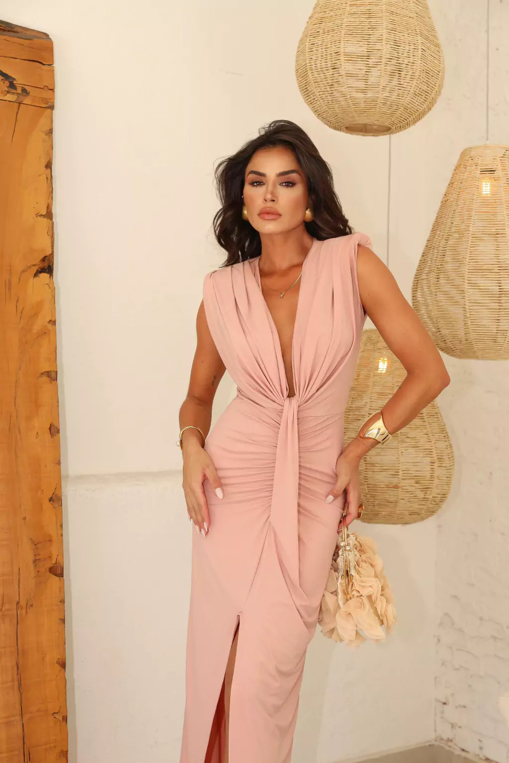 Descrição Completa: Vestido Nó Thassia Rosa Pó